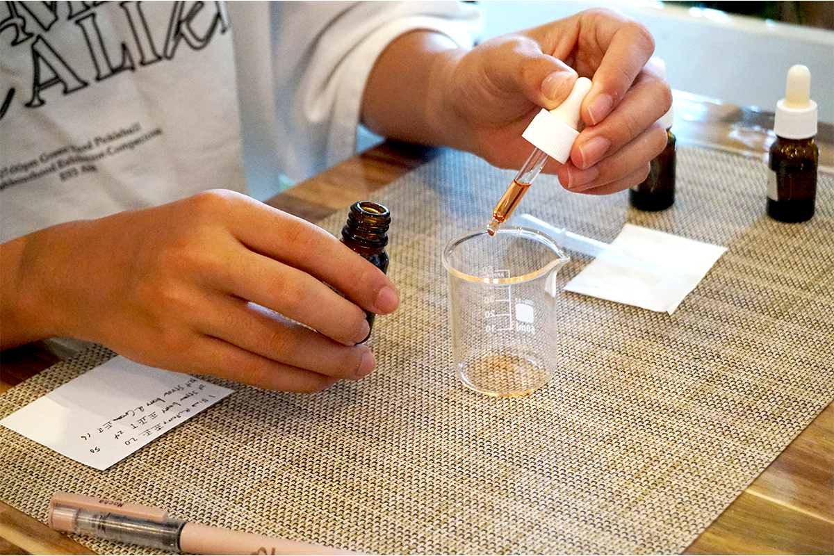 香りの調合からレシピ作成まで、スタッフが丁寧にサポートするクラフト体験。