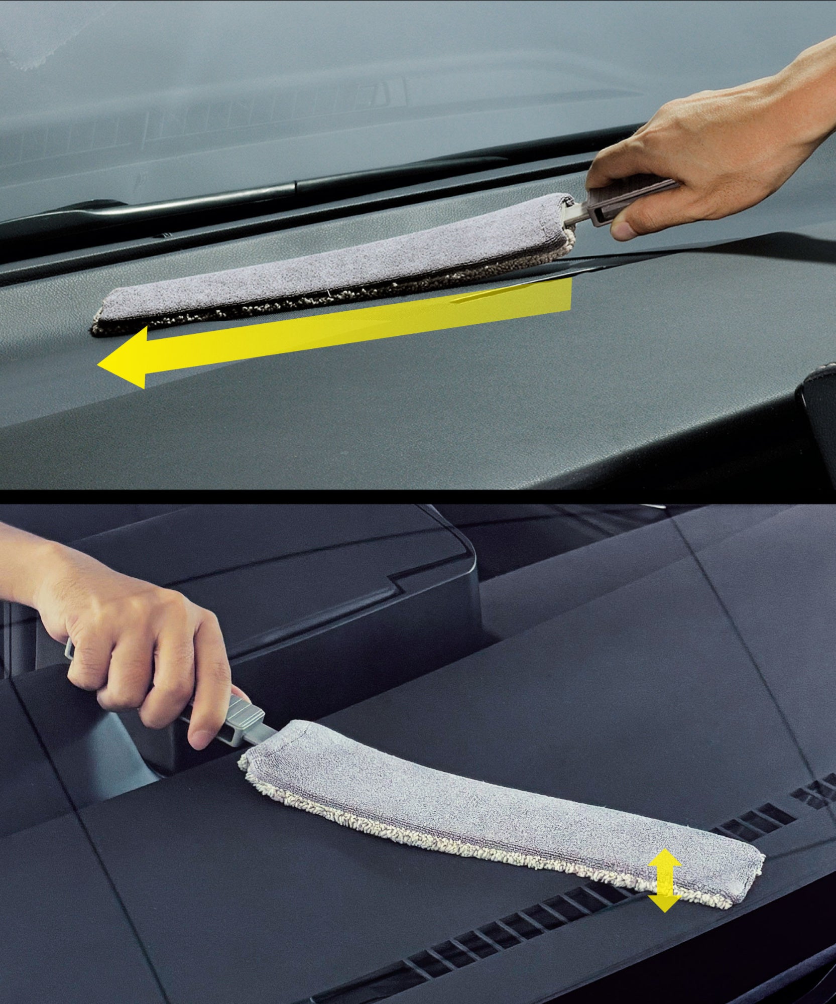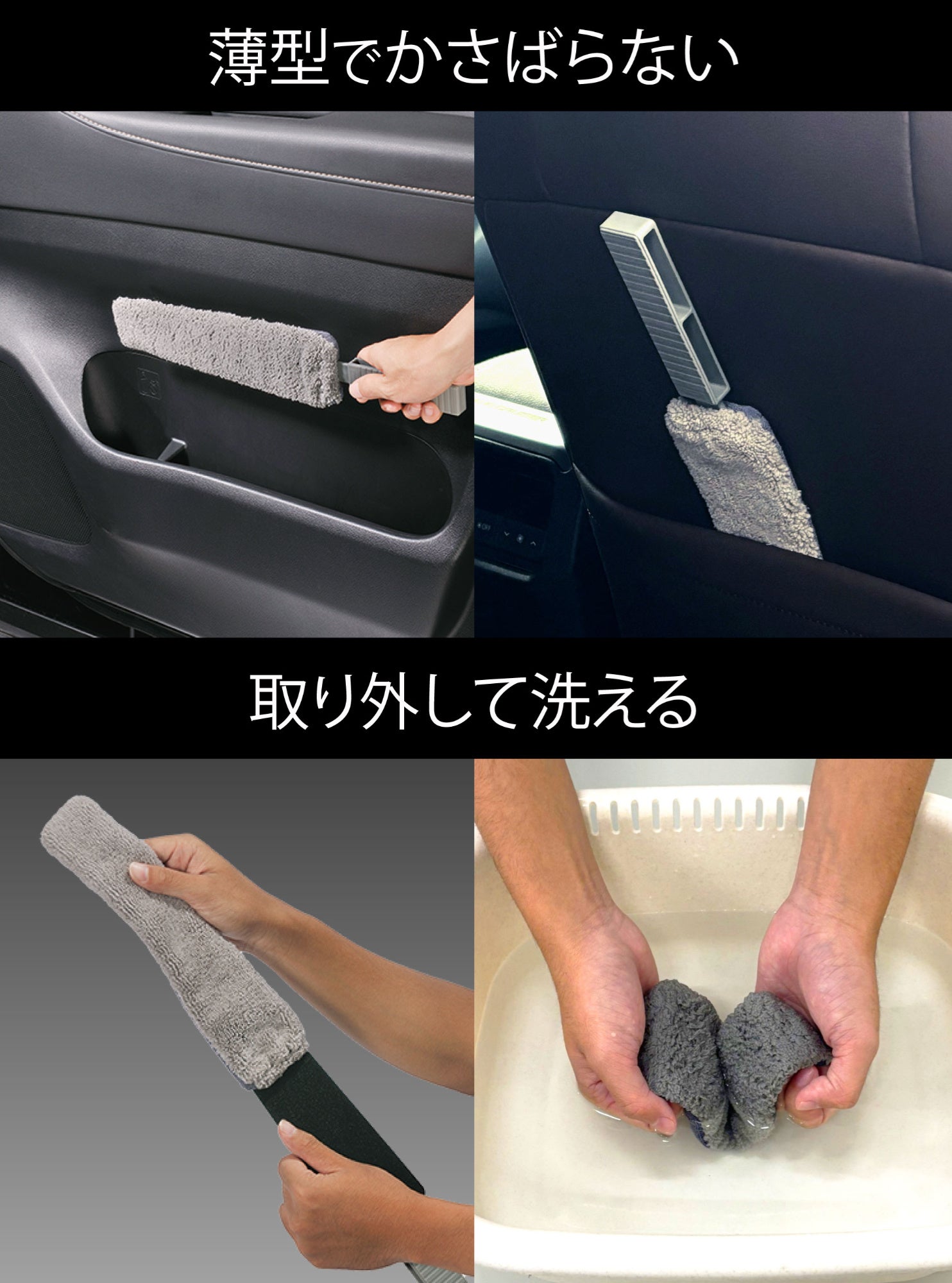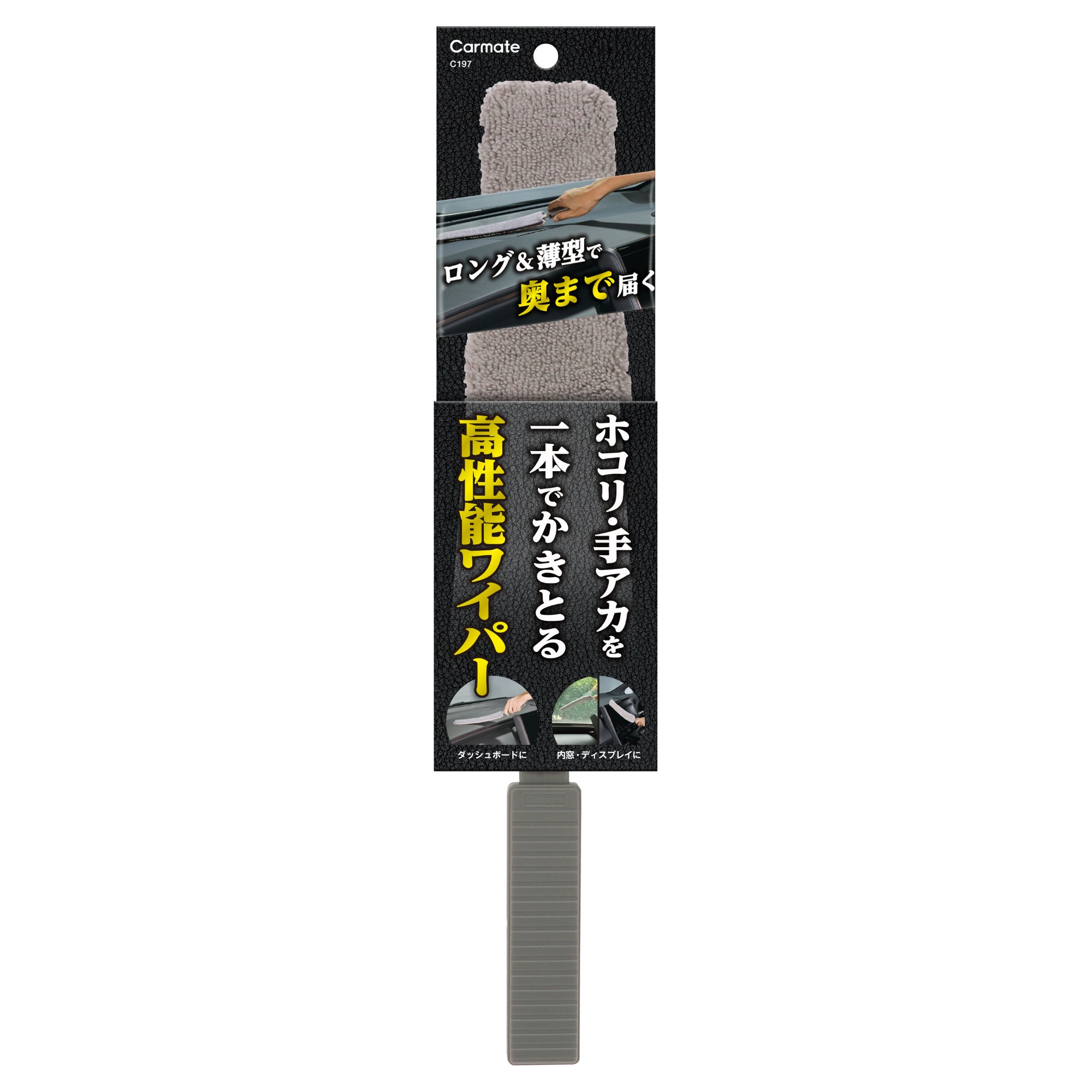 – 届きにくい場所もラクラクお掃除ロング&薄型設計で、クロスでは届かないダッシュボードの奥やすき間にも届いて汚れをキャッチ。
