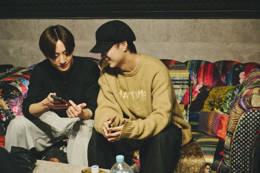 笑顔で話すSHUKIとDAISUKE。メンバー間の絆の深さが伝わる一枚です
