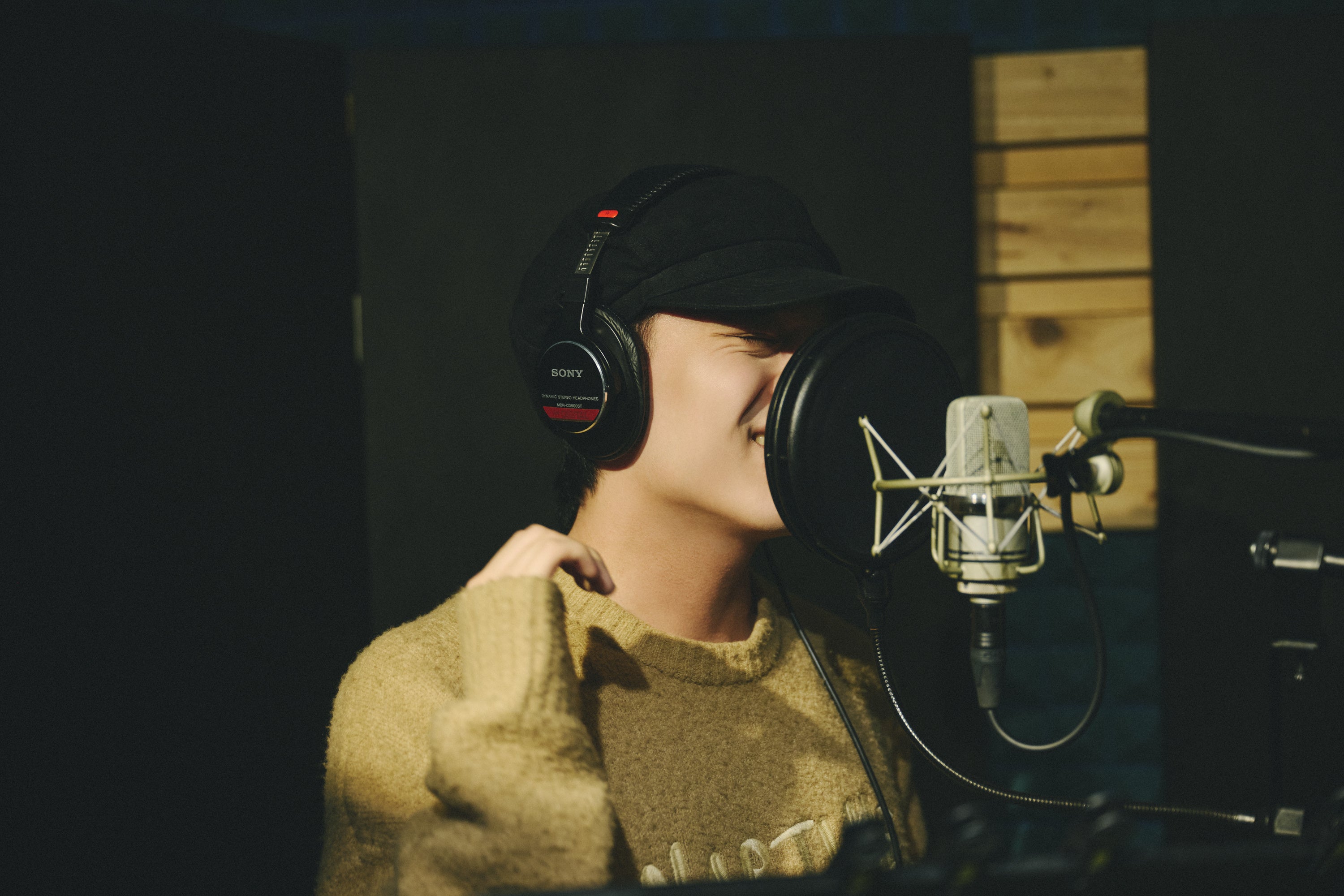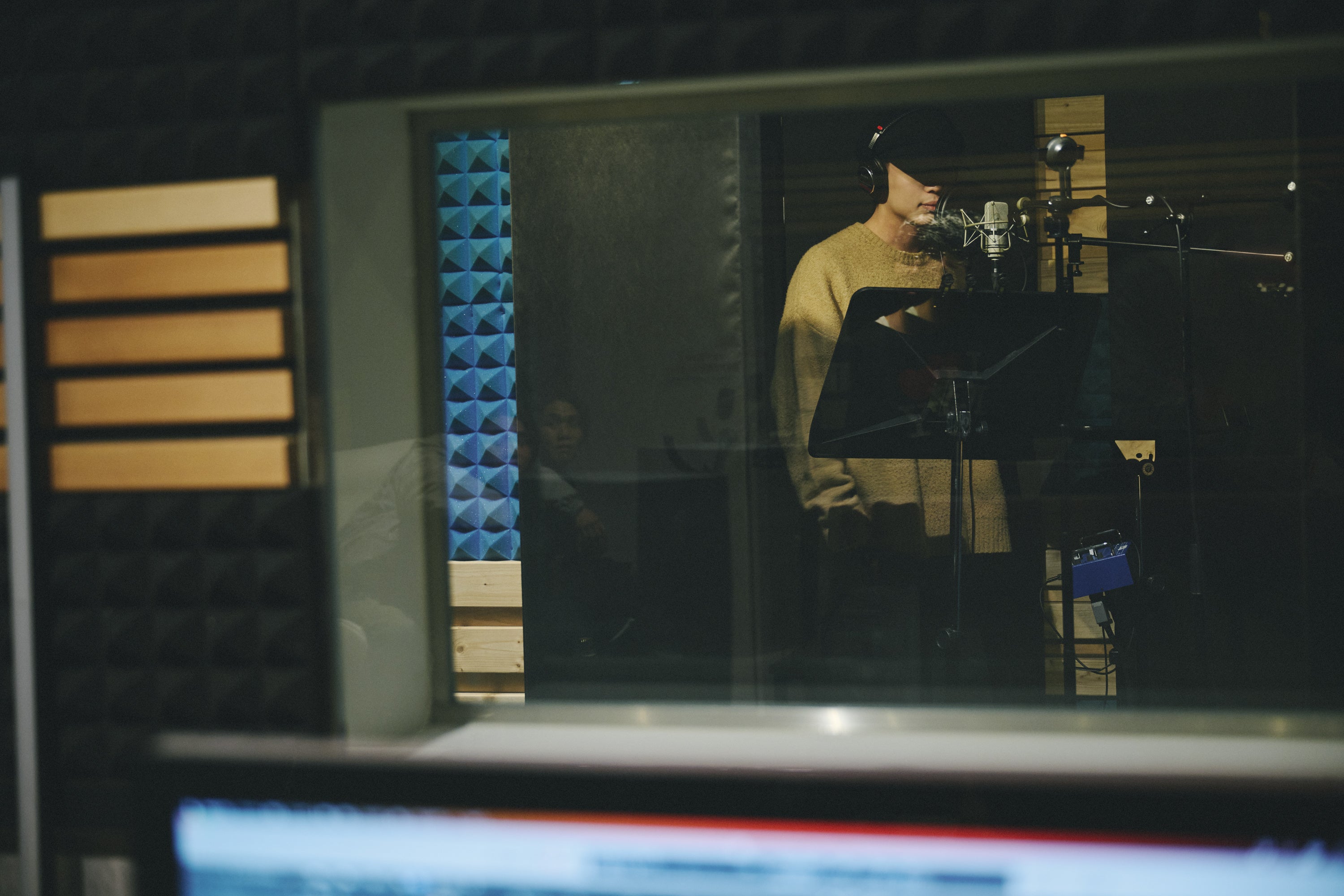 RECブースで真剣な表情を見せるSHUKI。センターとしての責任感が滲みます