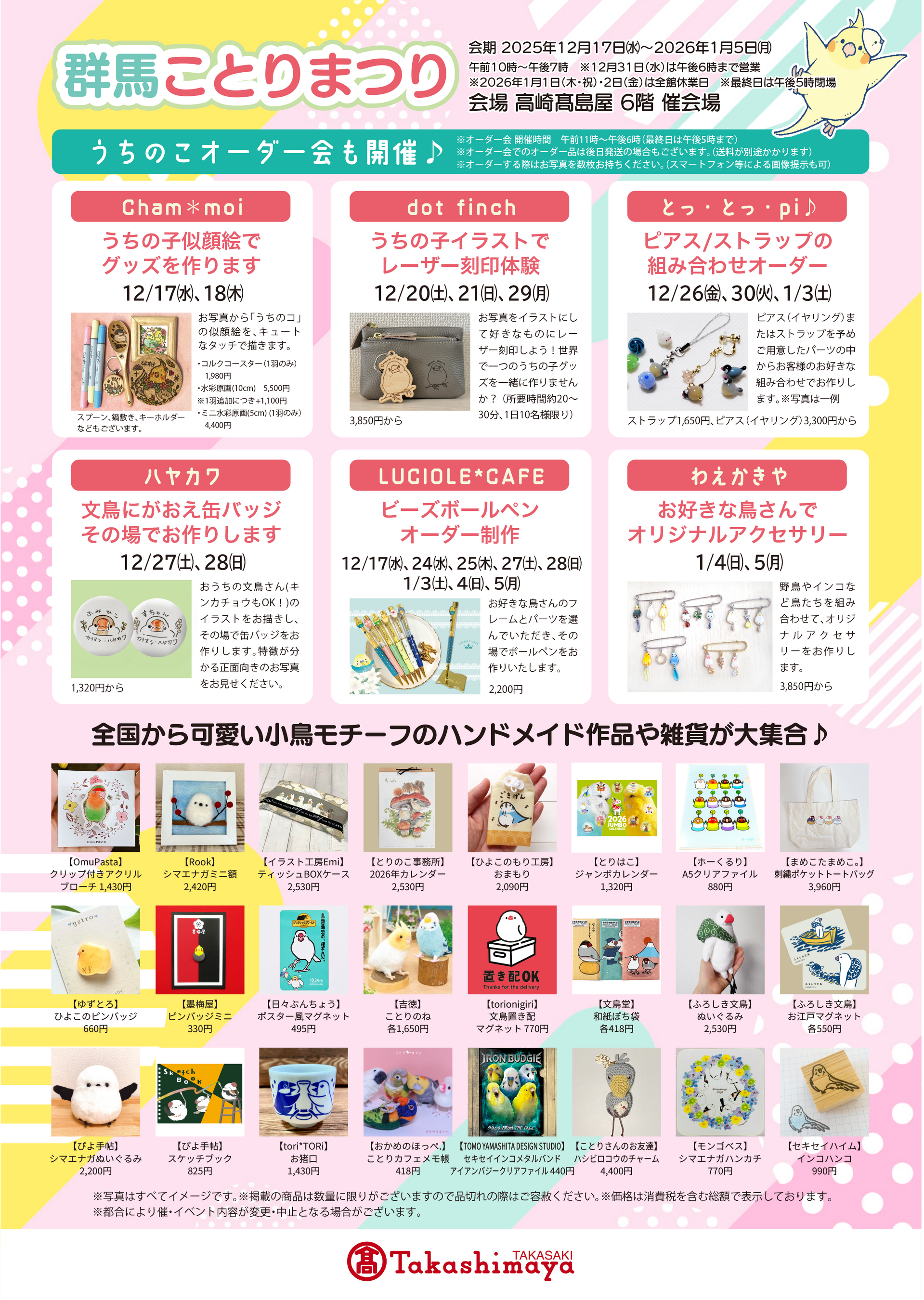 18日間のロングラン!高崎高島屋6階 催会場で「群馬ことりまつり」を開催します♪