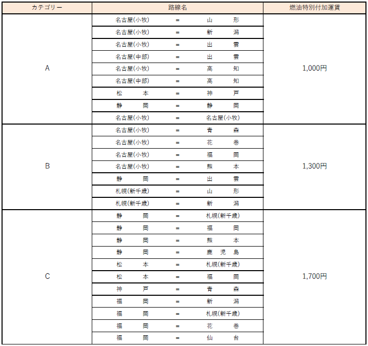 3.各種割引運賃利用の場合にも、この燃油特別付加運賃を適用いたします。