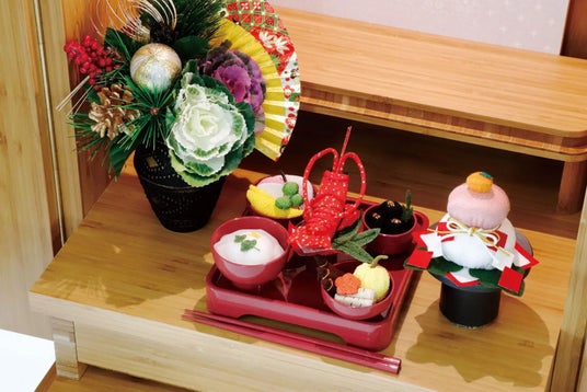 伊勢海老や数の子など縁起の良い食材が並ぶ「ちりめん飾り 御節料理」