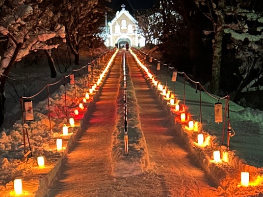 クリスマスイヴの夜、道南の有名な観光スポット「燈台の聖母トラピスト修道院」において、本物の炎が織りなす、心温まるクリスマスの思い出をお届けします。
