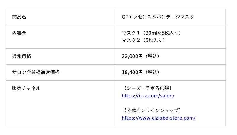 株式会社シーズ・ラボ(本社:東京都渋谷区、代表:山盛晴彦 全国25店舗)は、エステティックサロンでのトリートメント後のような肌状態をご自宅でも維持するために開発された「スキンプレミアムシリーズ(SPシリーズ)」の「GFライン」より、新商品『GFエッセンス&バンテージマスク』を2025年12月1日より店舗にて先行発売、公式オンラインショップでは12月16日に販売開始いたします。