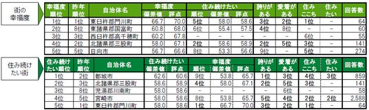 街の幸福度&住み続けたい街ランキング<TOP5> & 各種ランキング順位