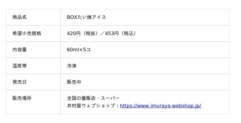 ※「たい焼アイス」シリーズ:『BOXたい焼アイス』・『たい焼アイス』