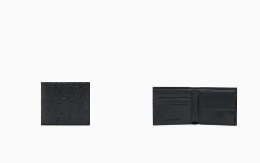 全面に施されたA|Xロゴのエンボスが、シンプルなデザインにさりげない個性を添える二つ折りウォレット。