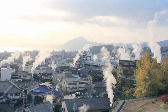 源泉数と湧出量が世界一である別府の湯けむりの景観
