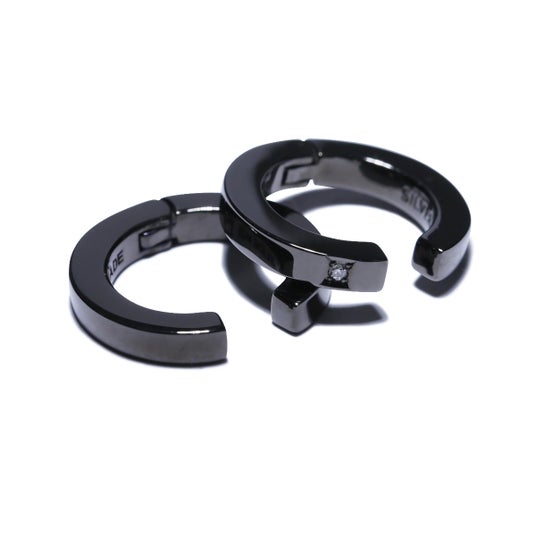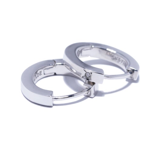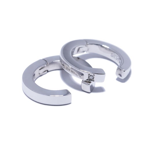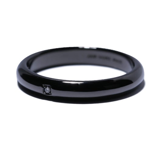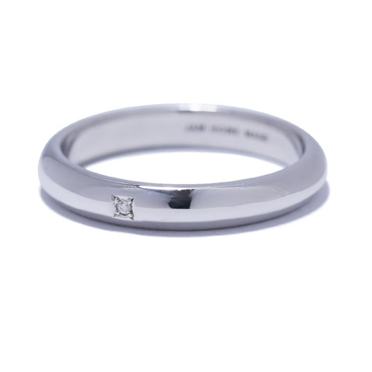 形態は《甲丸》と《平打ち》というプリミティブな断面構造に還元され、一点だけ留められた天然ダイヤモンドは装飾ではなく、
