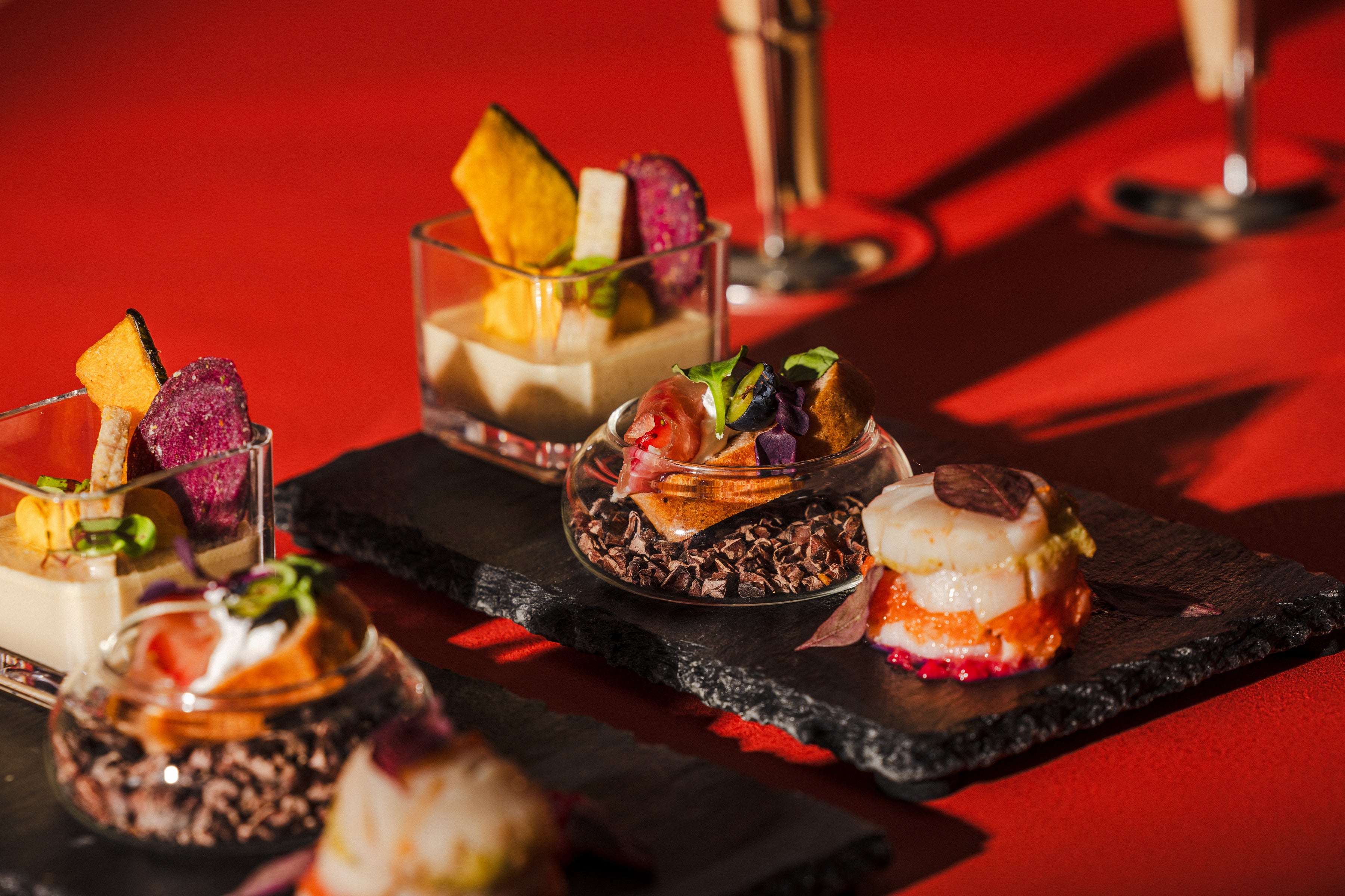 「いちごバレンタインアフタヌーンティー~Rouge et Noir~」は、ご好評いただいている現在開催中の「いちごアフタヌーンティー~Strawberry Symphony~」を、バレンタインをより満喫していただけるようアレンジした期間限定のアフタヌーンティーです。芳醇なチョコレートと色鮮やかないちごを贅沢にあしらい、洗練されたシックな装いで華やかに登場。さらに、フォアグラやホタテなど旬の食材を使ったセイボリーが味わいに深みを添え、大人の優雅なティータイムを彩ります。