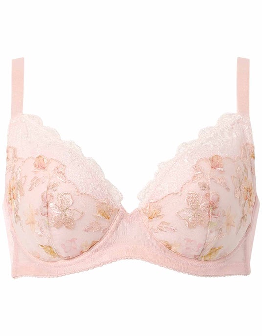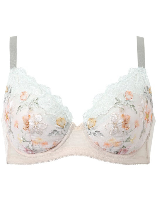 バージスライン全体に高密度不織布を使用し、ワイヤーがなくても下からバストをささえてバスト位置をアップ。密着感のあるストレッチ素材でバストにフィットしやすく、さまざまなバストに対応します。カップ全体を包むパワーネットで、バストを中央に寄せながら高さをおさえてコンパクトに。サイドをととのえることでバストが広がりにくく、脇もすっきり見せます。