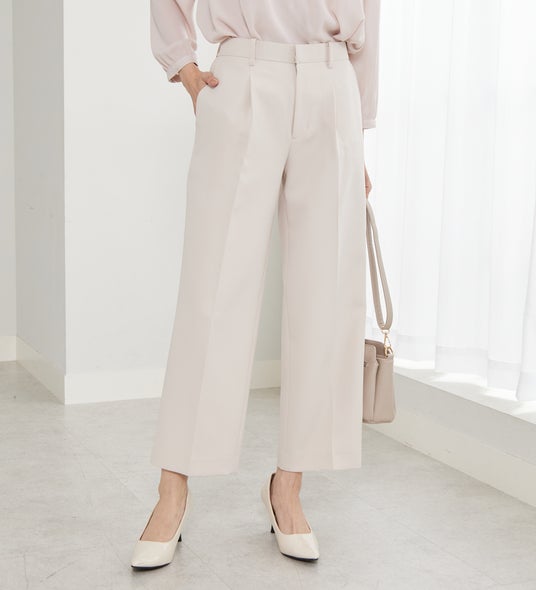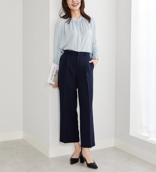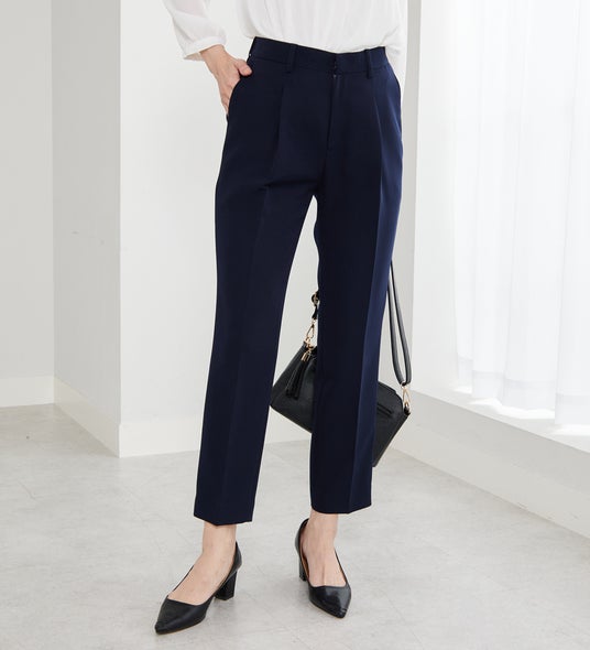 ■特長:上品できれいめなテーパードパンツ。フロントタックで腰まわりに程よいゆとりを持たせ、すっきりとした美しいシルエットを実現します。裾に向かって細くなるラインが脚をまっすぐきれいに見せ、スタイルアップ効果も抜群のアイテム。柔らかく伸縮性のある素材で快適な穿き心地を叶え、オケージョンはもちろん、通勤やお出かけなど幅広いシーンで活躍します。