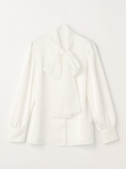 ・大ぶりなリボンデザインで華やかさを演出するブラウスと、オールシーズン活躍するオーガンジー仕様