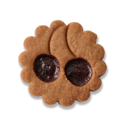 甘酸っぱいサワーチェリーのコンフィチュールをサントメ島産カカオとトンカの薫る生地でサンドした愛らしいクッキー。