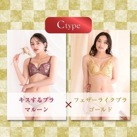 今年のおすすめは断然「ラッキーカラー福袋」。ストア内人気シリーズの「グラモアブラ」「キスするブラ」「フェザーライクブラ」を風水的ラッキーカラーの「RED」「OREANGE」「GOLD」で組み合わせ、