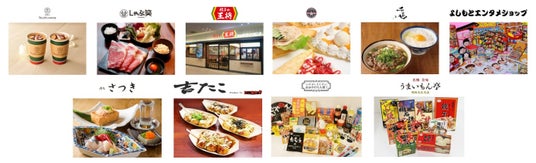 よしもとおみやげもん横丁、うまいもん亭、花のれんタリーズコーヒー、しゃぶ笑、餃子の王将なんばグランド花月店、cosco crepe、千とせ べっかん、よしもとエンタメショップ、酒処 さつき、吉たこ produce by たこ焼きブ!※劇場内の売店は対象外