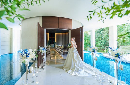 ― 水に浮かぶ幻想的なチャペル × 緑豊かなガーデンウェディング
