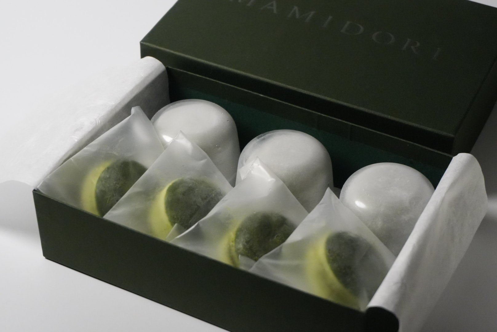 MAMIDORI大福の抹茶餡には上質な抹茶をふんだんに使用しつつ、もち粉やバターの選定にもこだわり「甘み、旨み、苦味が全て調和した至福の抹茶スイーツ」を追及した大福です。