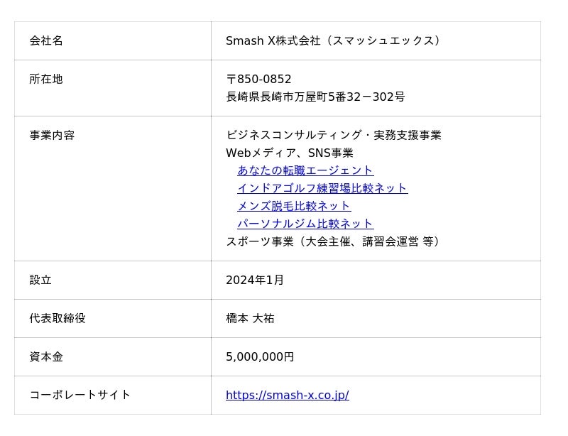 Smash X株式会社(本社:長崎県長崎市、代表取締役社長:橋本 大祐)は、パーソナルジム施設を比較・紹介するサイト「パーソナルジム比較ネット」を2025年12月31日に正式リリースしたことをお知らせいたします。