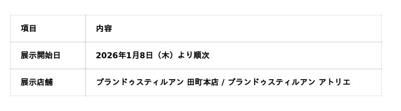 静岡県浜松市でブライダル事業を展開する株式会社スティルアン(本社:静岡県浜松市中央区田町326-30、代表取締役社長:石川 学)が運営するウェディングドレス専門店「ブランドゥスティルアン」は、2026年1月8日(木)より、田町本店およびアトリエ店にて2026年新作ドレスコレクションの展示を順次開始いたします。