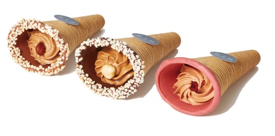 エッフェル塔をイメージしたコーンの中にミルク、スイート、ベリーのホイップクリームをそれぞれイン。アーモンドの香りとチョコ感が広がります。