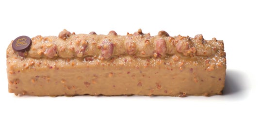 ピーナッツ風味の生地にピーナッツのプラリネをのせ、キャラメリゼしたクラッシュピーナッツとブロンドでコーティング。