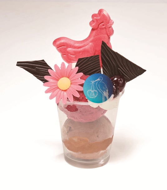 ビターチョコアイスとクランベリーなどのアイスの上にアマレナチェリーを添えて。