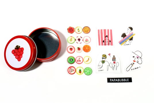 フルーツミックス(BAG/JAR/小分けセット)を含む商品を、税込2,000円以上お買い上げのお客様に、フルーツキャンディをデザインした《オリジナル缶》を1点プレゼント。缶の中にはオリジナルステッカーを封入しており、手帳やノートに貼るなど、日常でもお楽しみいただけます。