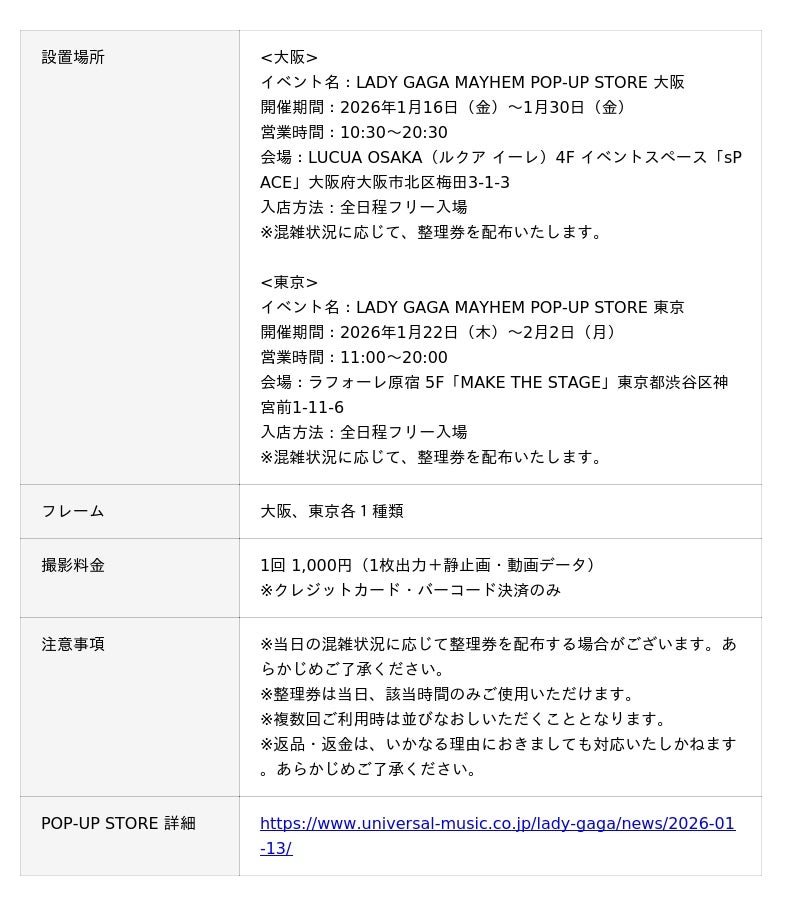 大阪・東京で開催「LADY GAGA MAYHEM POP-UP STORE」にて