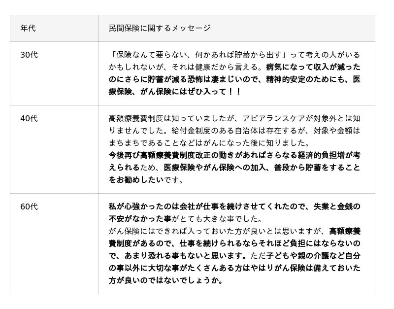 民間保険の大切さや見直しの必要性に関するメッセージ