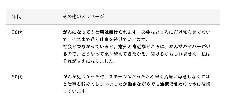 ~これから乳がんを経験するかもしれない方に向けてメッセージ(自由回答)~