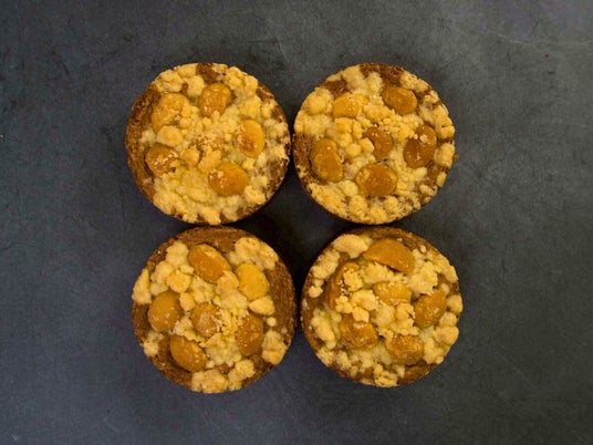 仕上げにシュトロイゼルショコラをのせ焼き上げ、食感のアクセントに。
