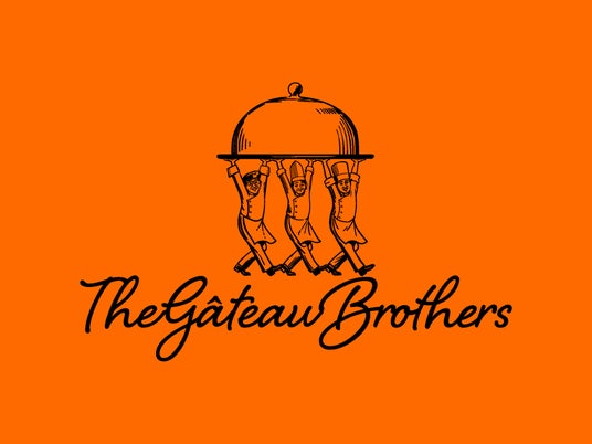 「ザ・ガトーブラザーズ」のロゴには、三人のシェフがコックコート姿で並び、ひとつの蓋(クローシュ)をともに担ぐ姿が描かれています。