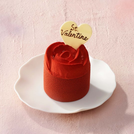 コクのあるショコラムースで甘酸っぱいフランボワーズのジュレを包み、ローズがほのかに香るフロマージュクリームを絞りました。バレンタインにおすすめの真っ赤な色が印象的な華やかなケーキです。