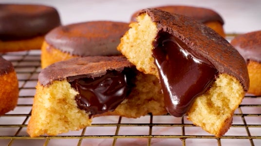 2層のショコラが織りなす【ぱりとろ食感】。プレミアムショコラ×生クリームの口溶けなめらかなガナッシュを「塩バニラフィナンシェ」の中央のくぼみにたっぷり流し入れ、さらに上面をショコラでコーティング。一口食べると上面のショコラが「ぱりっ」と割れ、中から濃厚なガナッシュが「とろっ」と溢れ出す、2層のショコラが織りなす【ぱりとろ食感】を実現しました。
