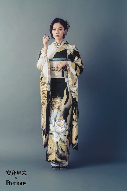 女優の安斉星来さんモデルの虎柄振袖