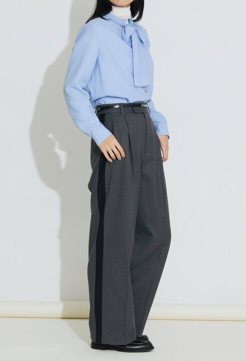 天然の柔らかさと合繊のしなやかさを持たせたビエラ素材を使用。ほどよいシアー感で、冬の装いに軽やかな抜け感をプラス。冬のワイドパンツ×ニットタートルに合わせれば、春を先取りしたレイヤードスタイルが完成します。