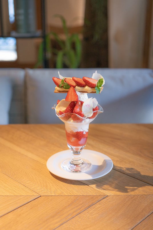 温暖な気候で育った県内産のいちごを使った、旬の美味しさをパフェに仕立てました。