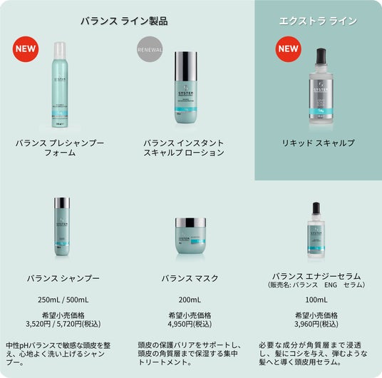 ウエラジャパン合同会社(本社:東京都新宿区 社長:小室達明)は、髪の「リピッド(脂質)」に着目し、約3,000万通りの組み合わせから最適な個性を特定し進化させるケアシステムが特徴的な『SYSTEM PROFESSIONAL(システムプロフェッショナル)』(以下、システムプロフェッショナル)の、『Balance LINE (以下、バランス ライン) 』より、新しいスキャルプケアのラインナップとして、深く*¹うるおいを与え、バランスのとれた頭皮環境へと導くプレシャンプーとスキャルプ用ローション(いずれもサロン専売品)と『Extra LINE(以下、エクストラ ライン)』から、頭皮にハリとうるおいを与え、長時間保湿するリキッド スキャルプ(サロン専用品)を2026年2月4日(水)より全国のヘアサロンにて展開します。