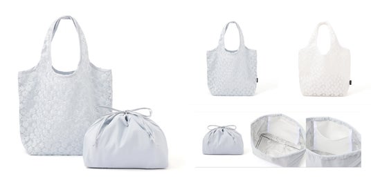オーガンジーやレースを使用した春らしい軽やかなバッグと、保冷・保温機能を備えたアルミ巾着がセットになったランチバッグです。