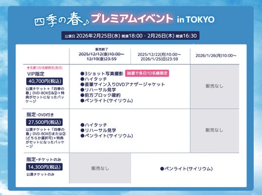 株式会社TBSグロウディア(東京都港区 代表取締役社長:園田憲)は、2月25日(水)、26日(木)に東京・有楽町よみうりホールにて開催される、ハ・ユジュン(AxMxP)とイ・スンヒョプ(N.Flying)出演「韓国ドラマ『四季の春』プレミアムイベント in TOKYO」のDVD付きチケット購入者対象ハイタッチ会に、ゲストのHi-Fi Un!corn(25日)、AxMxP(26日)の追加参加を決定しました。