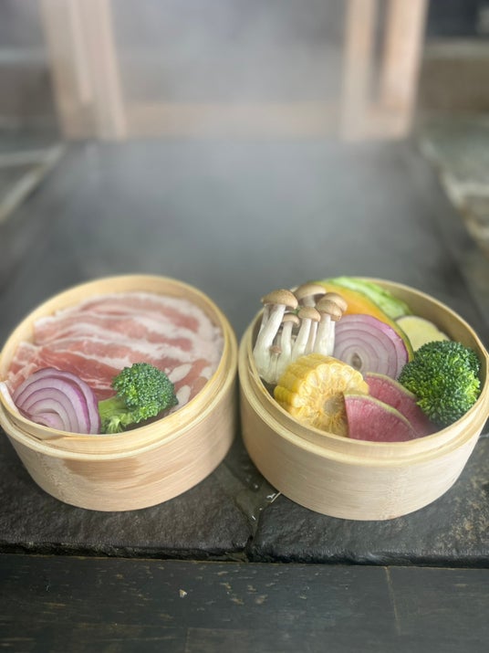 源泉十割の蒸気で蒸し上げ、野菜本来の甘みと香りを引き出します