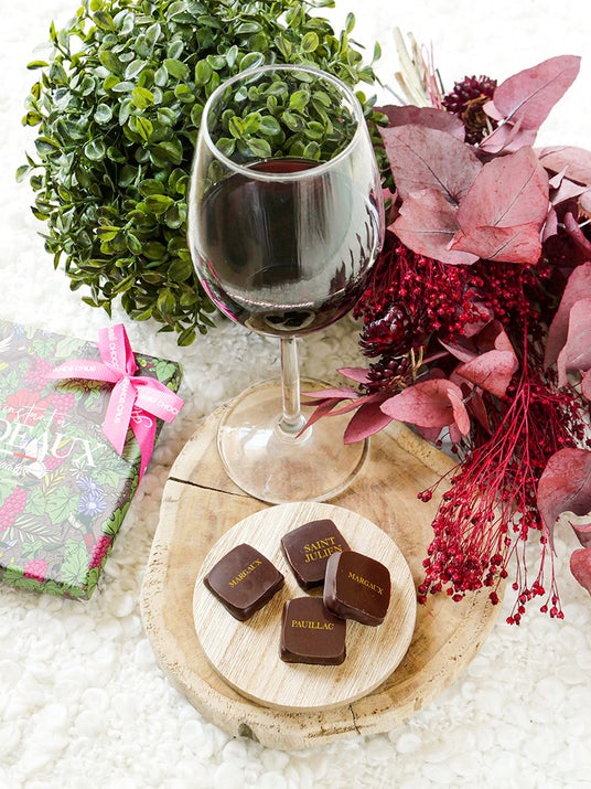 さっぱりとドライな印象の左岸、果実味溢れるスイートな右岸と、ワインの味わいがそのままガナッシュに結実し、左岸・右岸それぞれ4種類ずつ異なる味わいを、まるでワインをテイスティングするように味わえる特別なショコラです。
