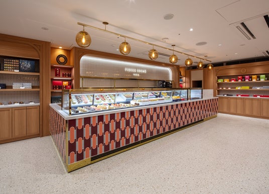 ピエール・エルメ・パリ グランスタ東京ブティックは、メゾンの世界観を体現した広い店内にマカロンやパティスリーを豊富に取り揃え、カフェも併設されています。