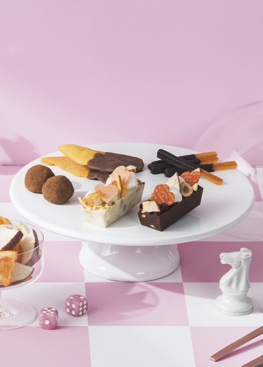ショコラティエが店頭で手作りするギフトにも喜ばれるバレンタイン期間限定のショコラアソート。ナッツやマシュマロ、ドライフルーツを合わせたロッキーロードや、アーモンドトリュフ、オランジェットなど異なる食感が楽しめます。