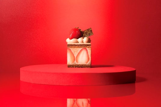 福岡県うきは市産の「あまおう苺」の甘酸っぱさを引き立てるあっさりとした甘みのカスタードクリームとビスキュイ。クリスピーチョコレートの食感がアクセントに。