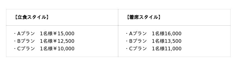 ※着席の場合は別途¥1,000(税金・サービス料込み)にて承ります。