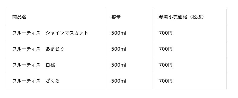 家庭用では、2026年2月18日(水)より「長野県産シャインマスカット」、「福岡県産あまおう」、「国産白桃」、「ざくろ」の全4種(4倍濃縮タイプ)を新発売いたします。