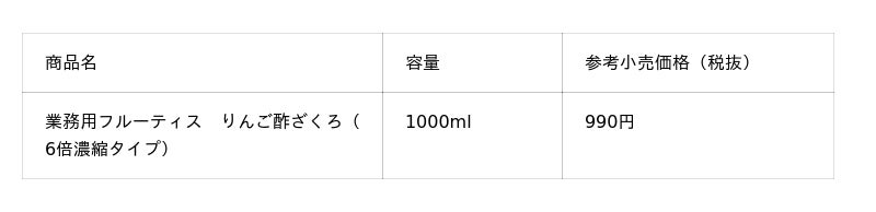 業務用では、家庭用とデザインを統一した新ラベルを採用するとともに、2026年2月13日(金)より「業務用フルーティス りんご酢ざくろ(6倍濃縮タイプ)」を新発売いたします。